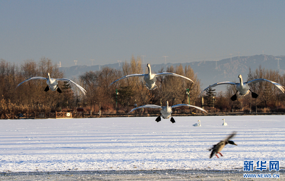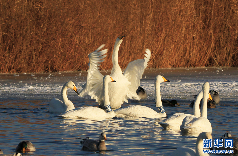 冬日里,在甘肅省張掖國家濕地公園,數(shù)只白天鵝沐浴著陽光悠閑地嬉戲、覓食,呈現(xiàn)出一幅自然和諧的生態(tài)畫卷。新華網(wǎng)發(fā)(陳禮 攝)