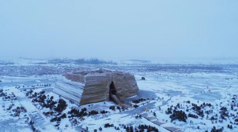 矗立在戈壁灘的居延塞烽燧