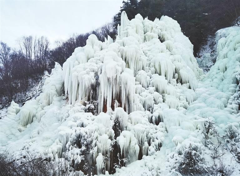 美輪美奐的冰雪景觀、趣味十足的冰雪項目……踏入渭河源東源景區(qū),仿若闖入一個冰清玉潔的琉璃世界,雪道、冰掛、雪雕等打卡區(qū)初具雛形。工作人員忙碌地平整雪道、調(diào)試設(shè)備,為冰雪旅游全力準(zhǔn)備。半山處,冰瀑恰似銀河倒掛,氣勢恢宏又不失婉約之態(tài),在日光的映照下,折射出五彩華光,似夢幻仙境。冰瀑周身,冰掛百態(tài)千姿,或尖銳如狼牙,或柔順若絲絳,或玲瓏似珊瑚,宛如自然女神精心雕琢的稀世珍寶,鬼斧神工,令人嘆為觀止。