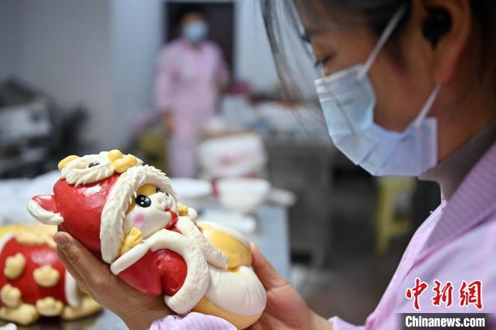 圖為面點(diǎn)師制作的“萌蛇”花饃。中新社記者 九美旦增 攝