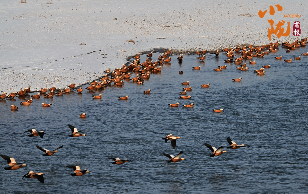 成群的候鳥在淺灘上悠閑地覓食、嬉戲,顯得格外的艷麗,為臨澤的冬日增添了一抹靈動與和諧的氣息。