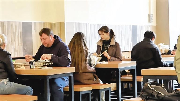 雖然身處異國(guó)他鄉(xiāng),但這家蘭州牛肉拉面的制作工藝依舊傳承著蘭州的傳統(tǒng),每一碗面都蘊(yùn)含著蘭州的匠心,每一口都是蘭州的味道。據(jù)牟陽介紹,別看這家店的拉面師傅是個(gè)外國(guó)人,但拉面的手法非常嫻熟,聽說是專門從蘭州拜師學(xué)藝歸來的。“師傅現(xiàn)場(chǎng)手工拉面,面條口感很棒,牛肉的分量也很足。”每次和同學(xué)朋友來這里吃面,地道的蘭州味道總會(huì)讓她贊不絕口。大口吃面,大塊吃肉,大碗喝湯,碳水帶給海外游子的快樂,在這一碗“牛大”里全都可以實(shí)現(xiàn)。