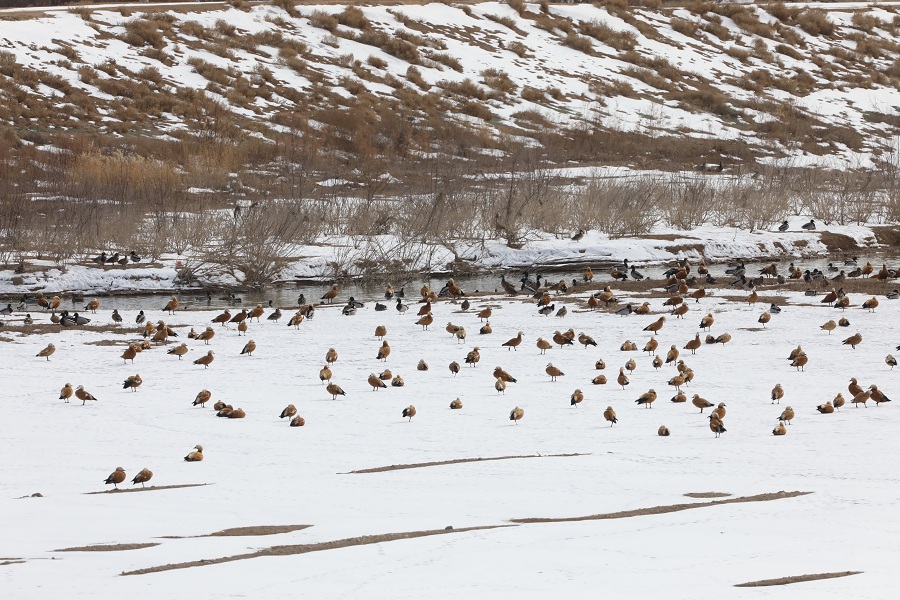近日,甘肅秦王川國(guó)家濕地公園迎來(lái)候鳥遷徙高峰,國(guó)家二級(jí)保護(hù)動(dòng)物斑頭秋沙鴨、白骨頂,成群結(jié)隊(duì)的赤麻鴨、綠頭鴨以及優(yōu)雅的白鷺構(gòu)成“萬(wàn)羽翔集”的生態(tài)畫卷,印證濕地生態(tài)系統(tǒng)的顯著改善。