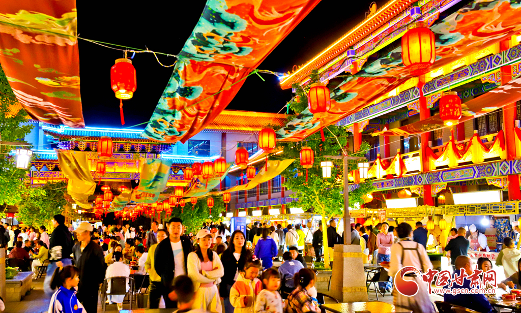 5月23日,甘肅省張掖市甘州區(qū)甘州府城內(nèi),燈光秀、書畫展、文藝展演、非遺展示令人目不暇接,美食一條街的各色美食飄香四溢,吸引眾多游客和市民前來(lái)拍照打卡,盡享夜晚美好時(shí)光。