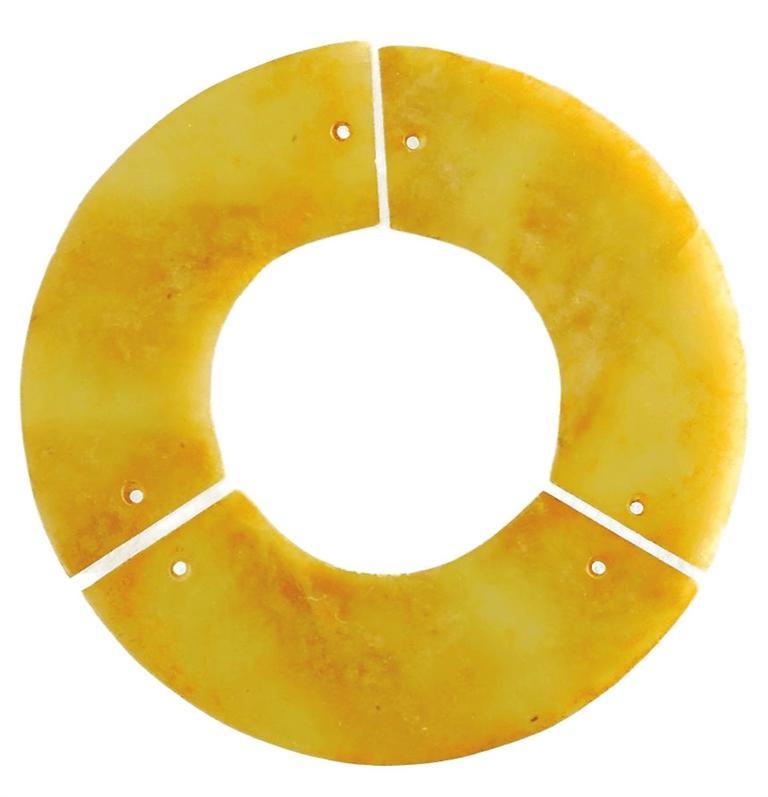 齊家文化玉璧是甘肅省博物館珍藏的玉器代表之一。玉璧是中國古代玉器的重要類別之一,廣泛應(yīng)用于祭祀、禮儀、佩飾等領(lǐng)域。館藏的兩件齊家文化玉璧,定名為白玉璧和青玉璧。二者整體呈圓形,中央有一圓孔。白玉璧,直徑為8.8厘米、厚0.9厘米、孔徑2.4—2.7厘米,武威市皇娘娘臺出土。青玉質(zhì),色青白,周邊有黃褐及黑色沁蝕,局部為雞骨白,表面光潔潤澤。璧體近圓,扁平,厚薄不甚均勻,外邊緣打磨痕明顯。中心有單面鉆孔,孔徑兩面大小不一,鉆穿處留有裂紋毛茬,是齊家文化玉器中的標(biāo)型器物。青玉璧,直徑9.1厘米、孔徑3.5厘米,廣河縣祁家坪出土。青玉質(zhì),璧體圓形扁平,表面光滑,琢磨規(guī)整。一面留有切割直痕,中心鉆孔為單面鉆。這兩件玉璧不僅展示了齊家文化玉器制作工藝的高超水平,還反映了當(dāng)時(shí)社會(huì)的宗教信仰和禮儀制度。