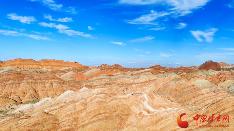 據(jù)介紹,張掖丹霞的核心秘密藏在巖石里。白堊紀(jì)時(shí)期,這里曾是巨大的斷陷湖盆,紅色碎屑巖、泥巖與石膏層交替沉積。隨后,印度板塊與歐亞板塊碰撞,地層被擠壓抬升。再經(jīng)2600萬(wàn)年風(fēng)蝕、水蝕、凍融雕琢,才形成如今陡崖與緩坡并存、色帶隨山勢(shì)起伏的“彩色丘陵+丹霞地貌”雙料奇觀。