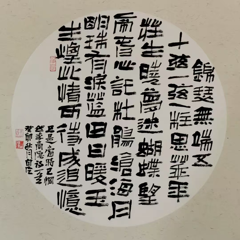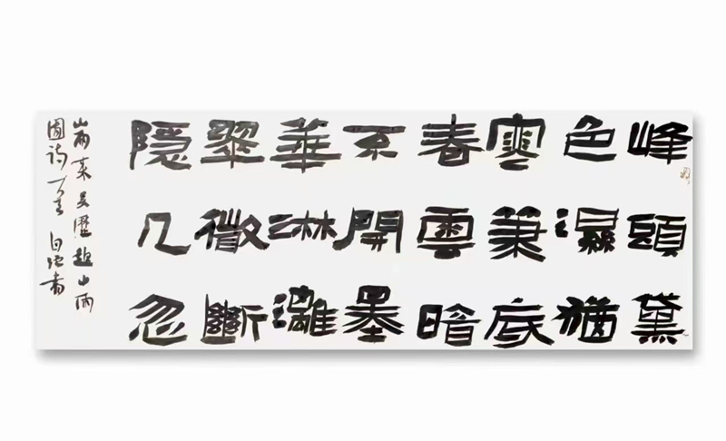 王自強的隸書植根于《西狹頌》的金石氣,又融入個人創(chuàng)新。他的作品《李白古風其一》在2021年“中國書法·年展”中脫穎而出,以古樸厚重的筆法、靈動多變的章法,位列全國前51名,成為成縣首位躋身國家級書法大展的藝術家。2025年,他的隸書作品再次入選全國第五屆隸書作品展,在15214件投稿中脫穎而出,展現(xiàn)出對漢隸藝術的深刻理解與創(chuàng)新表達。