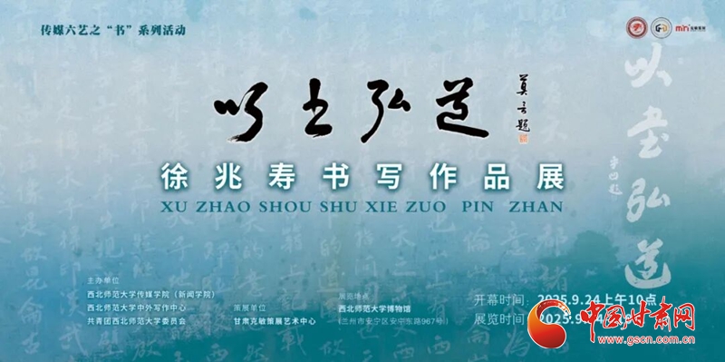 9月24日,“以書弘道——徐兆壽書寫作品展”在西北師范大學博物館一樓展廳開幕。此次展覽由西北師范大學傳媒學院(新聞學院)、中外寫作中心、共青團西北師范大學委員會聯(lián)合主辦。