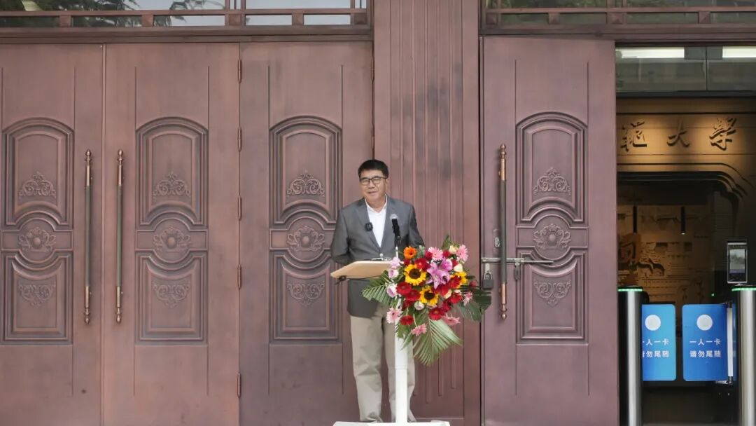 開幕式最后,徐兆壽致答謝詞。他說,做這次展覽的初衷,是因為在這個數(shù)字、AI和音視頻的傳播時代,書寫可以體悟中國文化的心法。他自三十六歲起開始與孔子、老子、鳩摩羅什等圣賢結緣,五十歲以后又遇見了伏羲、大禹,正是如此多的先賢讓他有了弘道的愿望。同時特別感謝樓宇烈、莫言、賈平凹、連輯、李敬澤等眾多文化名家的支持,共同呼吁大學生抄寫經(jīng)典,傳承中華文脈。最后,他呼吁更多的人拿起毛筆或鋼筆,重新書寫,傳承經(jīng)典,弘揚傳統(tǒng)文化。