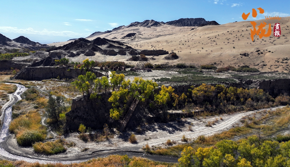 這里山勢(shì)奇特,因溝深線長(zhǎng),猶如峽谷,溝邊自生許多胡楊,被稱(chēng)為“胡楊峽”。你看,溝邊沙山林立,千年胡楊挺拔,溝內(nèi)溪水清澈纏綿,天然的紅柳、蘆葦、梭梭、沙棗樹(shù)等植被錯(cuò)落有致,共同繪就了一幅秋日畫(huà)卷。