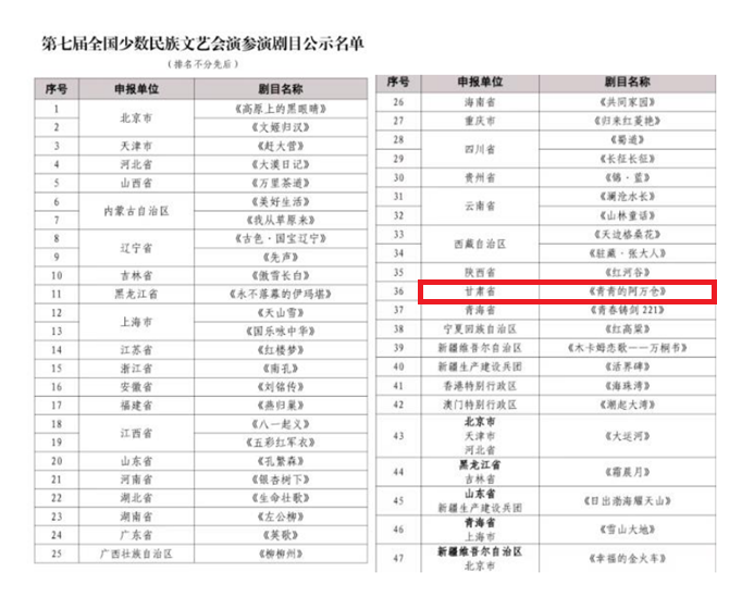 近日,國(guó)家民委正式發(fā)布《第七屆全國(guó)少數(shù)民族文藝會(huì)演參演劇目公示名單》。經(jīng)嚴(yán)格遴選與層層審核,由甘肅省委宣傳部、省委統(tǒng)戰(zhàn)部指導(dǎo),省民委、省文旅廳、省文聯(lián)、省衛(wèi)健委、甘肅演藝集團(tuán)聯(lián)合出品,甘肅省話劇院傾力創(chuàng)排演出的話劇《青青的阿萬倉(cāng)》成功入圍。