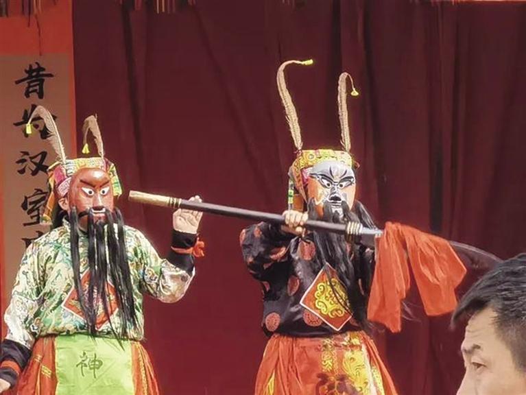 隴南市武都魚龍鄉(xiāng)陽(yáng)山村高山戲又稱“演故事”“走過(guò)場(chǎng)”等,發(fā)源于隴南武都高山地區(qū),是從隴南當(dāng)?shù)氐拿耖g祭祀活動(dòng)和傳統(tǒng)社火中孕育、演變而來(lái)的戲曲劇種。高山戲演出程式多種多樣,語(yǔ)言生動(dòng)活潑、幽默詼諧,2008年被列入第二批國(guó)家級(jí)非物質(zhì)文化遺產(chǎn)保護(hù)名錄。停止演出近20年后,在當(dāng)?shù)匚幕鞴懿块T的大力支持下,2022年正月陽(yáng)山村恢復(fù)了高山戲的演出。