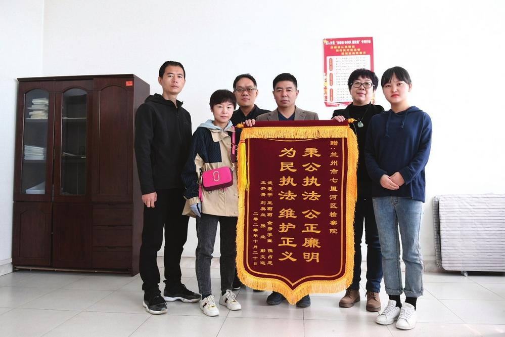 中國甘肅網(wǎng)10月27日訊 據(jù)蘭州晚報(bào)報(bào)道(記者 許沛潔 文/圖) “今天,我們專程過來感謝各位檢察官。你們維護(hù)了公平正義,如果沒有檢察院的依法監(jiān)督,我們這8個(gè)家庭就要背負(fù)287萬元的債務(wù)!”這份感謝來自七里河區(qū)檢察院辦理的一起民事審判監(jiān)督系列案件的多名申請人。10月26日,他們將一面錦旗交到了七里河區(qū)檢察院梁德安副檢察長和第四檢察部負(fù)責(zé)人手中,表達(dá)對辦案檢察官的感謝之情。