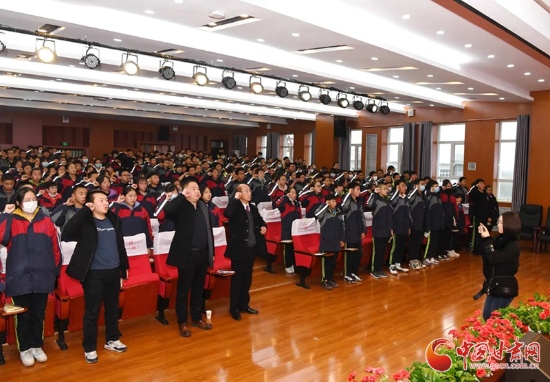 中國甘肅網(wǎng)12月4日訊(本網(wǎng)記者 李紅軍)12月4日是第七個(gè)“國家憲法日”。今天下午,甘肅省法院少年法庭的法官走進(jìn)蘭州市第六十四中學(xué),開展以“深入學(xué)習(xí)宣傳習(xí)近平法治思想、大力弘揚(yáng)憲法精神”為主題的憲法進(jìn)校園宣傳活動。該校300余名師生代表在學(xué)術(shù)報(bào)告廳聆聽了宣講報(bào)告,兩名基層法院人民陪審員應(yīng)邀參加了活動。
