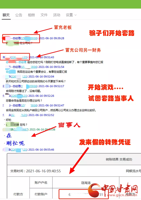 據(jù)了解,6月16日上午9時(shí)20分左右,安寧區(qū)某公司財(cái)務(wù)人員岳先生收到一封由“公司股東”發(fā)來的電子郵件,在郵件中推送了一個(gè)新建的QQ工作群,岳先生沒有多想就加入了此群。不久后,詐騙分子在此QQ群中冒充該公司法人和另外一名財(cái)務(wù)人員對(duì)岳先生下達(dá)指令,要求其向?qū)Ψ街付ㄣy行賬戶轉(zhuǎn)賬合同款370.5萬元。