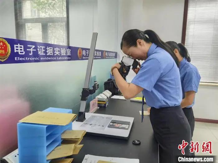 圖為電子證據(jù)實驗室司法鑒定人對涉案手機(jī)進(jìn)行編號、拍照。 崔琳攝
