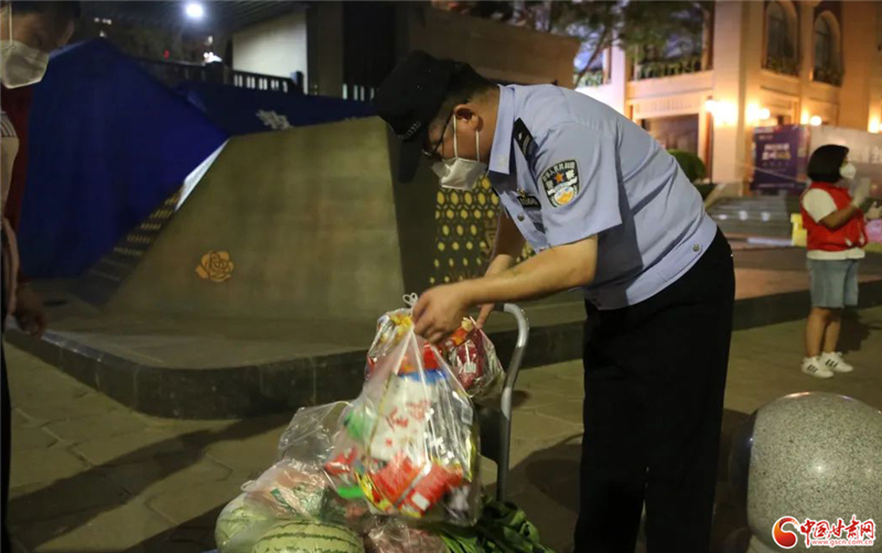 在安寧西路派出所轄區(qū)一處疫情高風險小區(qū),李東輝擔負起了入口值守和物資轉(zhuǎn)運工作,每天值守至少12小時,實行“白+黑”24小時倒班模式。李東輝對群眾訂購的物資逐一進行核對登記,保證種類數(shù)量齊全,隨后進行消殺,再按照訂單先后順序轉(zhuǎn)運至小區(qū)門口。物資運送時時都有,李東輝總是從白天忙到深夜。