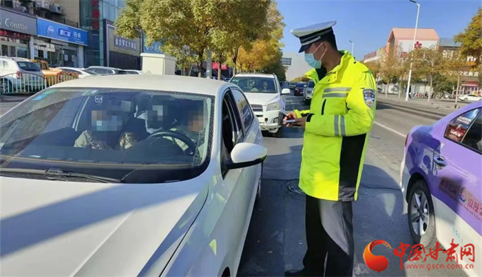 12月17日,金昌市公安局金川分局交警大隊(duì)民警檢查過(guò)往車輛,預(yù)防和減少道路交通事故的發(fā)生。