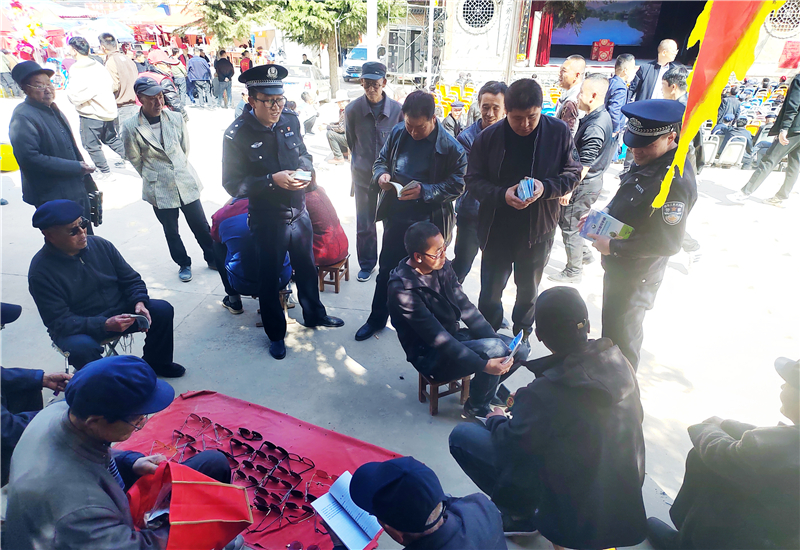 據(jù)悉,開春以來,甘谷縣鄉(xiāng)村群眾活動多種多樣,各基層派出所民警也隨著群眾活動的開展“忙”了起來,結(jié)合“三抓三促”行動工作,深入群眾中間,利用鄉(xiāng)村廟會、鄉(xiāng)鎮(zhèn)集會、游園賞花等人流量較多的有利時機(jī),積極開展宣傳活動。