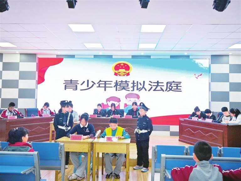 首先,在李青源律師的悉心指導(dǎo)和同學(xué)們的踴躍參與下,經(jīng)過前期的認(rèn)真彩排,同學(xué)們以模擬法庭的形式現(xiàn)場模擬了一起因校園欺凌導(dǎo)致的刑事訴訟案件。參與庭審活動(dòng)的學(xué)生們沉浸式、體驗(yàn)式、互動(dòng)式參與其中,有序扮演著審判長、公訴人、辯護(hù)人等角色。活動(dòng)也讓在場的其他同學(xué)認(rèn)識(shí)學(xué)習(xí)了法庭審判的全過程,身臨其境感受了校園欺凌會(huì)產(chǎn)生的嚴(yán)重后果,以及法律的威嚴(yán),引導(dǎo)青少年學(xué)會(huì)用法律保護(hù)自己。