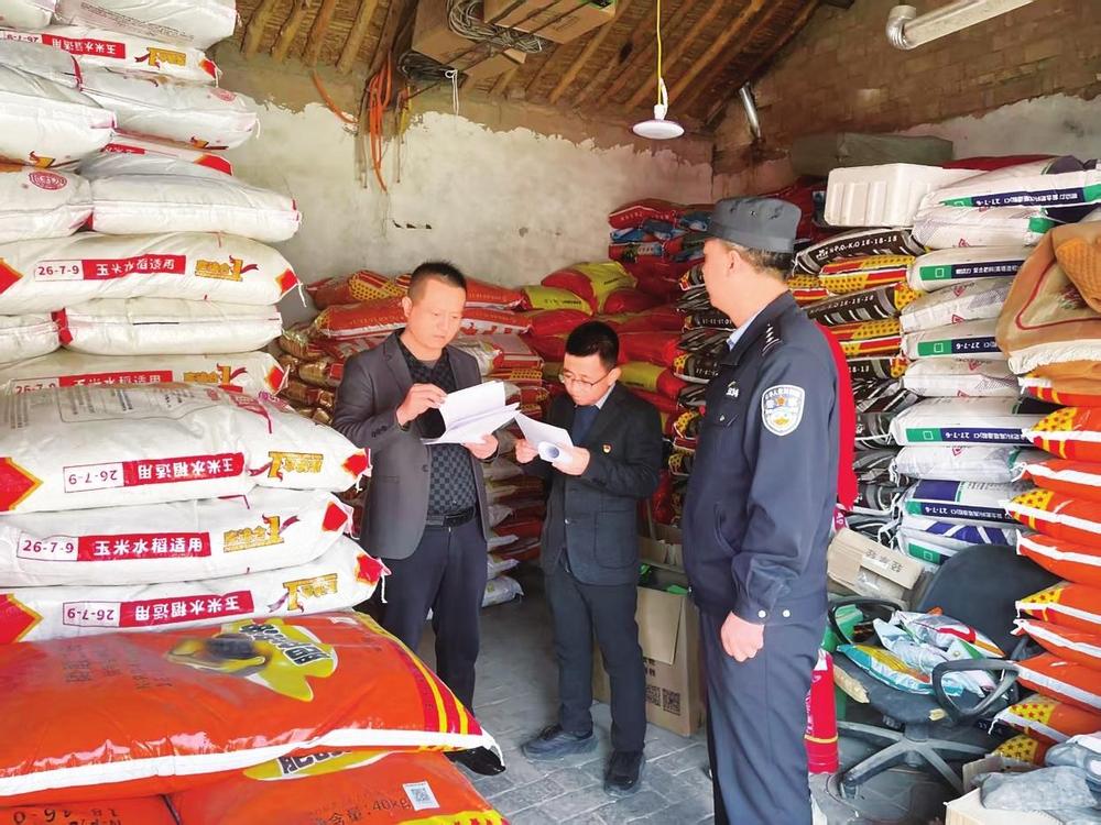 民警聯(lián)合有關部門開展農資安全檢查。環(huán)縣公安局供圖