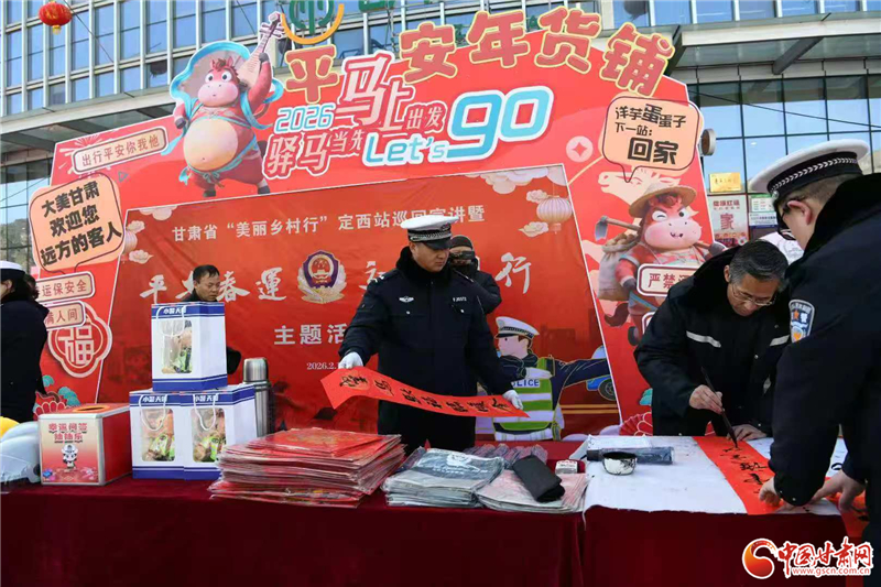 2月10日,農(nóng)歷臘月二十三,是中國傳統(tǒng)節(jié)日小年,正值2026年春運高峰,甘肅省公安廳交通管理總隊聯(lián)合定西市公安局交管支隊在服務(wù)區(qū)舉辦了甘肅省“美麗鄉(xiāng)村行”(定西站)交通安全巡回宣講暨“平安春運·交警同行”主題活動,向南來北往的駕駛?cè)怂蜕闲麓旱淖8:吞貏e的“安全年禮”。