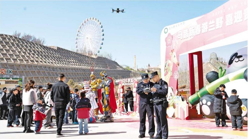 春節(jié)假期,蘭州市公安局安寧分局民輔警在景區(qū)護(hù)航游客安心游玩。新甘肅·甘肅法治報通訊員 張軍揚(yáng) 攝