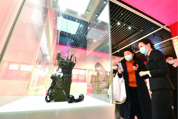 日前,“紅色電波中的領(lǐng)袖風(fēng)范——毛澤東同志香山時(shí)期發(fā)布電報(bào)手稿”專題展覽在北京香山革命紀(jì)念館舉行。圖為觀眾在觀看拍攝展出的電臺。(圖片來源:人民視覺)