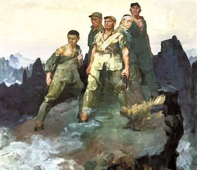 有專家評(píng)價(jià)說(shuō),畫家選擇了英雄們跳崖犧牲前的一瞬間,深入刻畫人物的英雄氣概。在統(tǒng)一的氣勢(shì)中,不同人物的動(dòng)作、眼神又巧妙地富有變化,作為背景的峻峭雄偉的山峰與人物群像融為一體,猶如刻在大自然中與世長(zhǎng)存的紀(jì)念碑。(一凡)