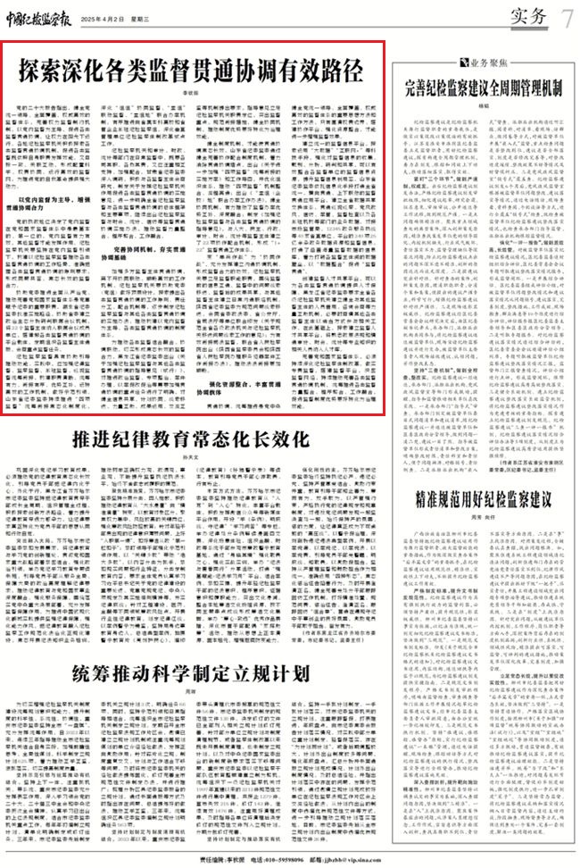 中國(guó)紀(jì)檢監(jiān)察報(bào):探索深化各類(lèi)監(jiān)督貫通協(xié)調(diào)有效路徑