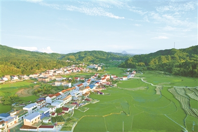 安徽省岳西縣紀委監(jiān)委聯(lián)合縣農(nóng)業(yè)農(nóng)村局開展集中整治行動,助推高標準農(nóng)田建設(shè)提質(zhì)增效。圖為該縣古坊鄉(xiāng)上坊村境內(nèi),整修后的高標準農(nóng)田與錯落有致的民居、綿延的青山交相輝映。羅慧圓 攝