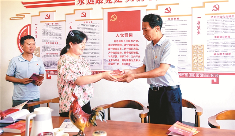 近日,安徽省宣城市宣州區(qū)紀(jì)委監(jiān)委第一黨支部來到“1+1”黨建共建村級(jí)黨支部,為村級(jí)紀(jì)檢委員送上“政治生日”賀卡。姚駿 攝