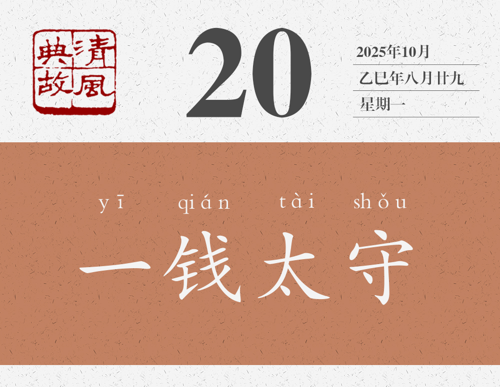 劉寵聽(tīng)了他們的話說(shuō):“我的政績(jī)?cè)趺茨芟衲鷰孜徽f(shuō)得這樣好呢?真是辛苦你們了!”為表示接受他們的美意,他從每個(gè)人帶來(lái)的錢(qián)中挑了一枚收下了。民間還流傳說(shuō),劉寵出了山陰界,就把收下的幾枚錢(qián)投進(jìn)江里,江水頓時(shí)清澈見(jiàn)底。從此之后,此江便被稱為錢(qián)清江。劉寵去世后,人們?cè)诮呅蘖艘粋€(gè)亭子就叫“一錢(qián)亭”,為他修建了一座廟就叫“一錢(qián)太守廟”。“一錢(qián)太守”不僅成為劉寵的稱號(hào),也成為后世稱頌地方官員為民造福、為政清廉的典故。明人高啟詩(shī)《野老行送陳大尹》:“雞鳴相送拜道邊,愿公受取一大錢(qián)。”