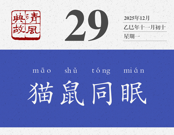 俗話說(shuō):“老鼠睡貓窩,白送一口肉。”但當(dāng)貓和老鼠住在一起,同進(jìn)同出的時(shí)候,情況則如另一句俗話所說(shuō):“老鼠嫁花貓,冤家變親家。”后遂以“貓鼠同眠”為典,比喻執(zhí)法者失職瀆職,包庇縱容違法犯罪者為非作歹;或形容官匪沆瀣一氣,同流合污。明人李開先傳奇《林沖寶劍記》第六出:“都是讒言佞言,一個(gè)個(gè)貓鼠同眠。”