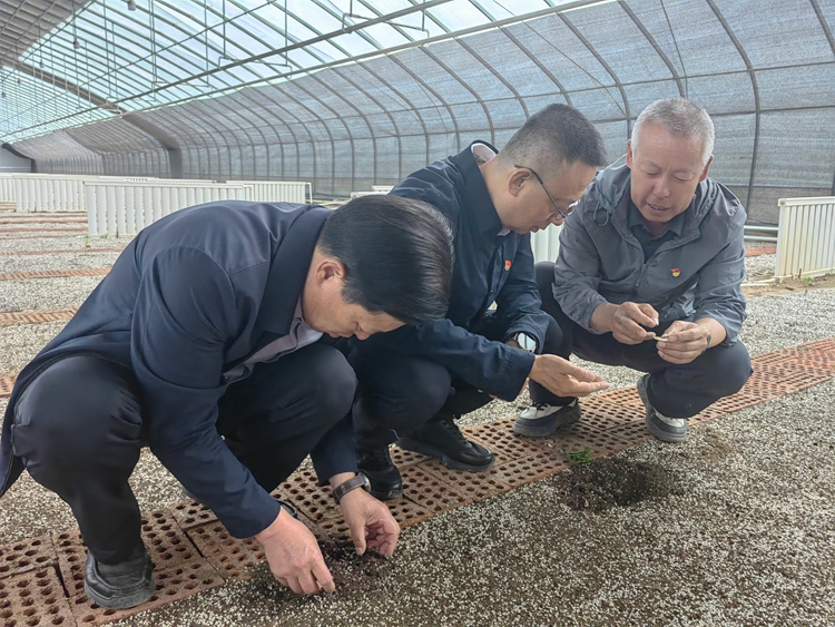 省紀委監(jiān)委派駐省農(nóng)業(yè)農(nóng)村廳紀檢監(jiān)察組工作人員深入榆中縣河灣高寒山地生態(tài)農(nóng)家示范園了解情況。