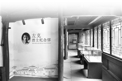 陽(yáng)光穿過(guò)館內(nèi)的戲臺(tái)飛檐和雕花窗欞,停留在展臺(tái)陳列的泛黃手稿上。“幼妹左克,忠厚老實(shí),個(gè)性溫和,勤奮用功”“周平兄,紀(jì)念振先的修改稿已脫稿,有三千字”……一行行回憶文字在光影斑駁中穿越時(shí)空,直擊心弦。照片墻上,一張左克身穿網(wǎng)球服打網(wǎng)球的照片十分光彩奪目。照片中的她,青春洋溢,明媚鮮活??粗@張照片,左克侄孫裘冶良動(dòng)情地說(shuō)道:“她本可以享受舒適安逸的生活,卻依然選擇了充滿艱辛的革命道路,更說(shuō)明她信仰之堅(jiān)定。”