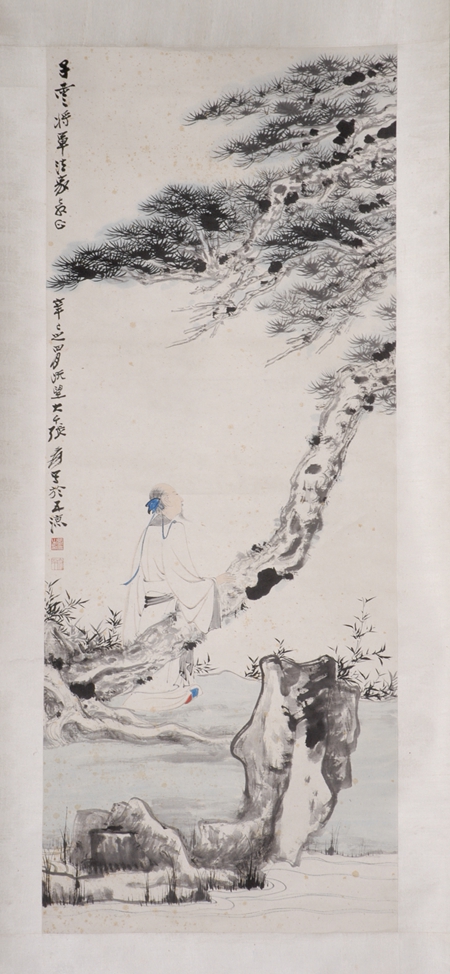 張大千長松高士軸