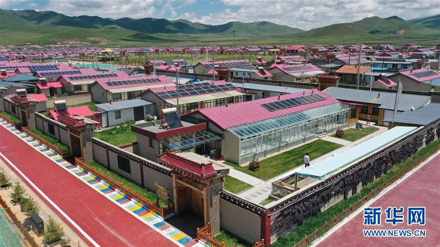 這是6月20日拍攝的甘南藏族自治州碌曲縣尕海鎮(zhèn)尕秀村村貌(無人機照片)。 新華社記者 陳斌 攝