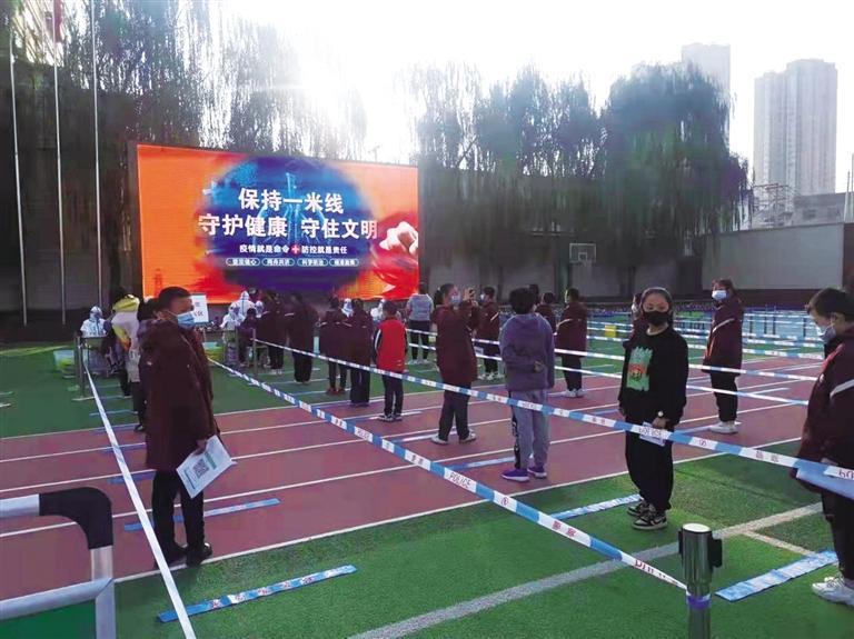 社區(qū)黨總支書記魏念星告訴記者,24日清晨,來自市、區(qū)機關下沉社區(qū)黨員志愿者、社區(qū)工作人員、物業(yè)管理人員、退役軍人、轄區(qū)個人志愿者共計80余名,按照社區(qū)分配安排部署,分別到中廣尚城點、聚金雅園點、海鴻國際點3個核酸檢測點位開展工作。中廣尚城志愿者服務隊20余名同志,在組長的安排下,按點位分工,分為5組,設立5個卡口,確保每個關鍵點位有志愿者職守。每位志愿者堅守崗位,耐心疏導,負責現場維持秩序,勸導群眾按1米線排隊等候,引導居民出示健康碼,核酸檢測后及時收回檢測號牌,并告知沒有號牌的居民不要排隊,耐心等待樓管發(fā)號后再排隊。