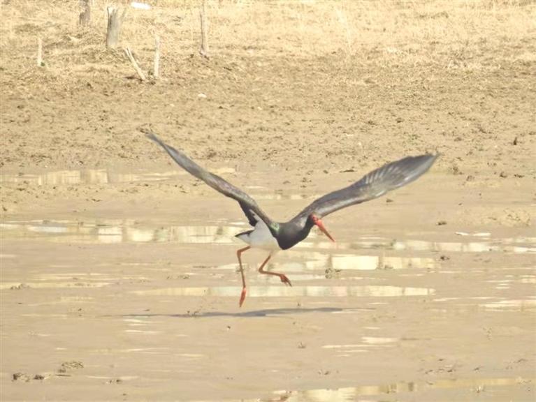 黑鸛是國家一級重點保護野生鳥類,喜在河流、沼澤、濕地中覓食魚、蛙、昆蟲等,繁殖于崖壁或高樹上。黑鸛在我國分布于東北、西北、華北等大部分地區(qū),分布較廣,但種群數(shù)量較少。黑鸛對覓食水域,環(huán)境安全性要求極高,水質(zhì)清澈,水體食物豐富,對棲息環(huán)境十分“挑剔”。黑鸛現(xiàn)身該區(qū)域,從一個側(cè)面印證了該區(qū)域水質(zhì)向好。據(jù)介紹,連年來,連城保護區(qū)開展生態(tài)治理修復(fù)工程,生態(tài)環(huán)境明顯改善,該局加強水域內(nèi)生物多樣性保護工作力度,引來大天鵝、黑鸛、大白鷺、普通秋沙鴨、赤麻鴨、綠頭鴨等水鳥來此棲息停歇,成為美麗風(fēng)景線。