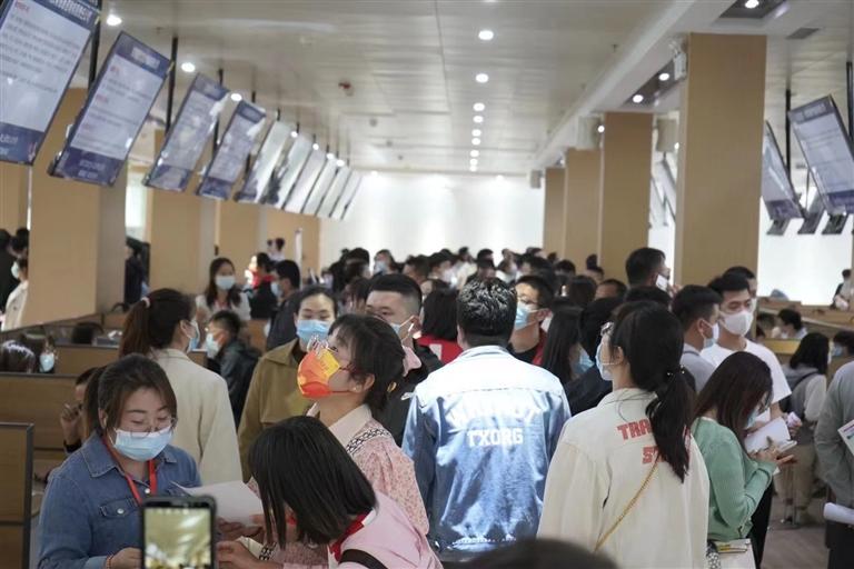 招聘會(huì)現(xiàn)場人潮涌動(dòng) 蘭州日?qǐng)?bào)社全媒體記者 陳夢(mèng)圓 攝