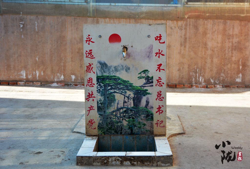 家家戶戶的井臺(tái)上,嵌著這樣的“感恩壁”,白色瓷磚兩側(cè),兩行紅彤彤的大字格外顯眼——“吃水不忘總書(shū)記,永遠(yuǎn)感恩共產(chǎn)黨”?!?/p>