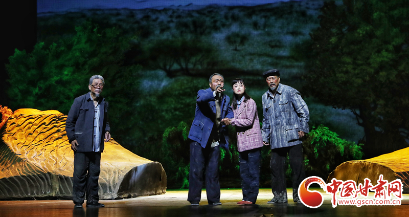 話劇《八步沙》以“時代楷模”——古浪縣八步沙林場“六老漢”三代人先進群體治沙造林的真實故事為素材,通過描寫“六老漢”為了生存與沙漠抗爭,最終取得人與自然和諧共生,鑄就了一座時代楷模的不朽豐碑。該劇別具匠心地從自然、歷史、人生的三項維度,凸現(xiàn)“六老漢”種樹治沙的艱苦奮斗、毫不退縮,讓觀眾與主人公在勞作苦斗過程中共同感受苦辣酸甜、喜怒哀樂的人生況味,真切剖視六老漢質樸堅韌的當代愚公的風骨與情懷。
