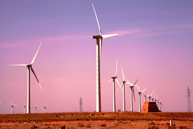 位于甘肅省酒泉市瓜州縣的風(fēng)電場正源源不斷地向各地輸送清潔能源。韓甜甜攝