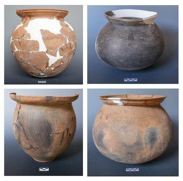 四臺(tái)遺址面積約15萬(wàn)平方米,考古發(fā)現(xiàn)房址40余座,出土了陶、石、骨、貝類遺物800余件,可以區(qū)分為年代不同的五組文化遺存,其中,第一、二組遺存處于舊石器時(shí)代向新石器時(shí)代過渡階段。第一組文化遺存年代距今10400至10000年,發(fā)現(xiàn)6座近方形半地穴房址,出土打制石器、細(xì)石器、磨制石器、骨角器以及動(dòng)物骨骼等,陶器有筒形罐、板狀器等,器表戳印圓圈紋或壓印折線紋、網(wǎng)格紋。第二組文化遺存年代距今9200至9000年,發(fā)現(xiàn)4座近方形半地穴房址,出土陶板狀器、石研磨器以及較多骨針、骨錐等,呈現(xiàn)出與第一組連續(xù)發(fā)展的特征。
