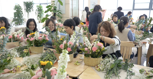 繁花似錦報春來,天姿國色抒情懷。活動現(xiàn)場花香四溢、芬芳溫馨,充滿著春天般的氣息,大家手捧鮮花,在花藝老師的講解下,開始學習各種鮮花所蘊含的花語祝福和選花、裁剪、搭配、造型及養(yǎng)護等藝術(shù)插花技巧。隨后,女工們將原本普普通通的月季、康乃馨、蝴蝶蘭、滿天星、向日葵等多種花材修剪整枝,根據(jù)不同的色彩和形狀有層次地搭配在一起。通過精心構(gòu)思造型、發(fā)揮創(chuàng)意想象,有的注重意境創(chuàng)設追求,有的突出枝情花韻之趣,有的抒展自然樸實風格……在細致地修飾和精心地創(chuàng)作下,一枝花、一棵草都變得詩情畫意和清新怡人,節(jié)日的喜慶氣氛瞬間升騰。