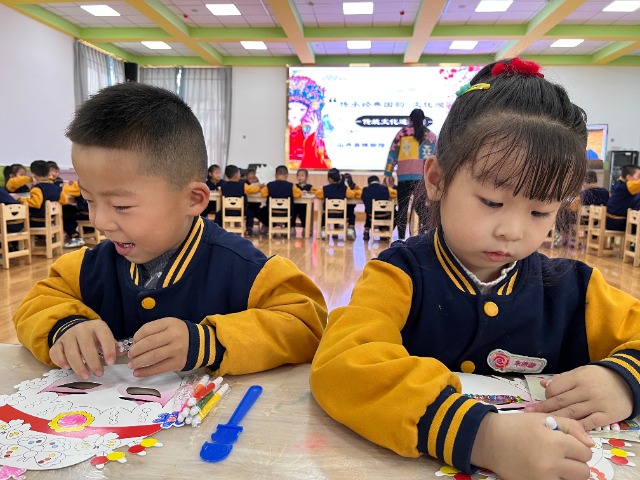 中國(guó)教育報(bào)-中國(guó)教育新聞網(wǎng)訊(記者尹曉軍通訊員張亮楊兆玉)近日,甘肅省張掖市山丹縣東街幼兒園邀請(qǐng)縣博物館聯(lián)合開(kāi)展“傳承經(jīng)典國(guó)韻文化浸潤(rùn)童心”傳統(tǒng)文化進(jìn)校園活動(dòng)?;顒?dòng)中,博物館的老師不僅為孩子們講述了京劇臉譜的內(nèi)涵、特點(diǎn)及分類,還帶領(lǐng)孩子們模仿了戲曲選段中的動(dòng)作,現(xiàn)場(chǎng)唱了戲曲名段。在老師的講解示范下,孩子們巧手繪制了臉譜。現(xiàn)場(chǎng)孩子們熱情高漲、積極參與,傳統(tǒng)文化悄無(wú)聲息在孩子們心中“生根發(fā)芽”。