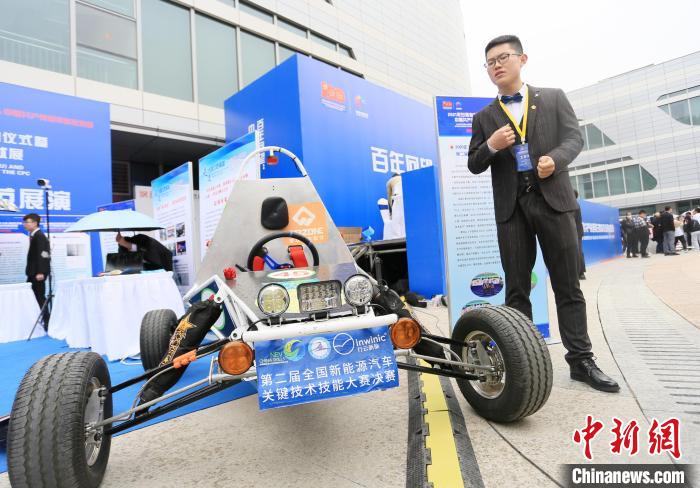 圖為甘肅高校學子展示新能源汽車輕量化技術。(資料圖)高展攝
