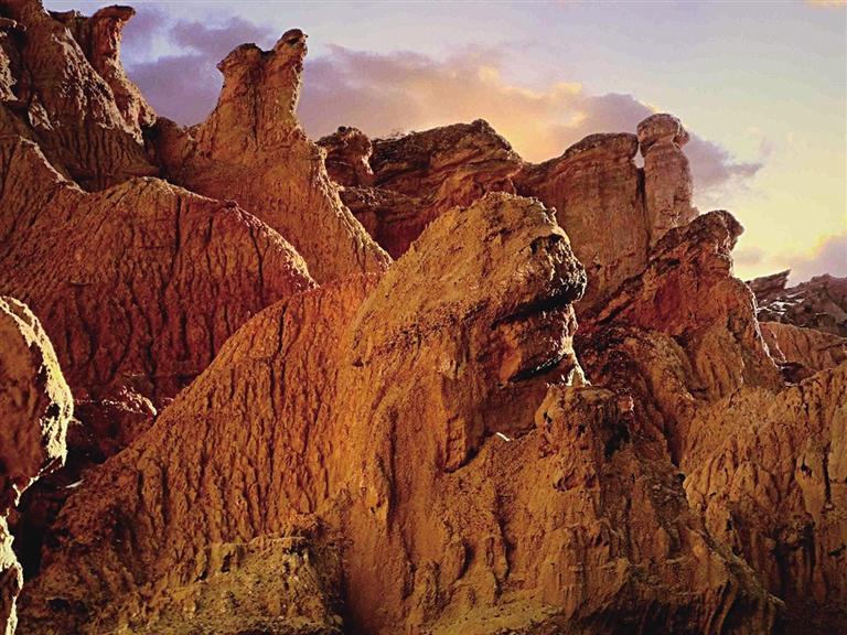 張掖土林地貌主要集中在該市肅南縣境內(nèi),平均海拔高度1700米左右,面積約20平方公里。土林發(fā)育齊全、類型多樣,從幼年時期的細(xì)溝土牙,到中青年期的圓盆土柱,直至成熟期的坡地殘柱,均有呈現(xiàn),完整地展示了土林地貌的形成與演化過程。
