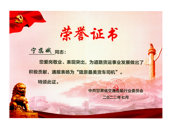 誠實守信奔跑在幸福路上的寧蕊娥也成為甘肅交通運輸系統(tǒng)2023年獲得全國五一勞動獎章的勞動者。